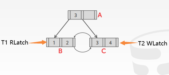使用以上两种策略对B+Tree进行并发控制,如果仅仅是从上到下的访问,是不会产生死锁的。但是当在叶子结点中进行搜索时,由于可能有两个线程从左右两个方向进行访问,就会产生死锁问题。