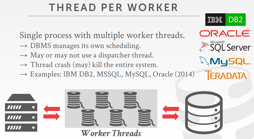 注意:使用多线程模型不代表DBMS支持intra-query parallelism