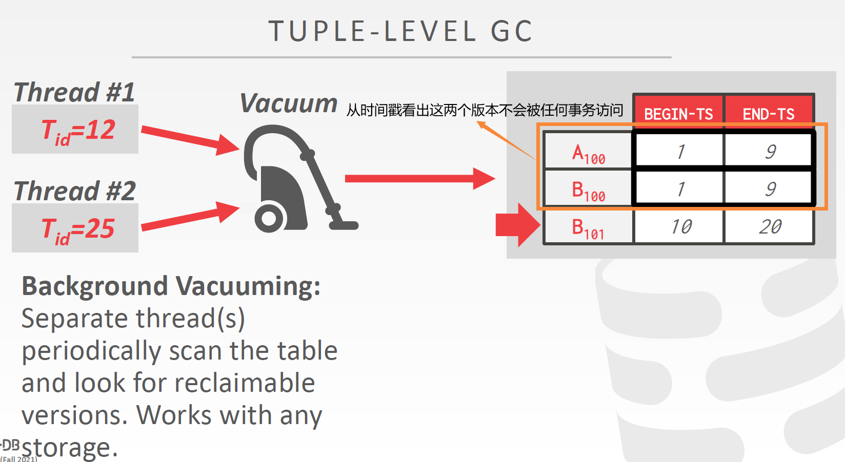当DBMS检测出某个版本不可能再被当前事务使用时,就会对其空间进行回收。